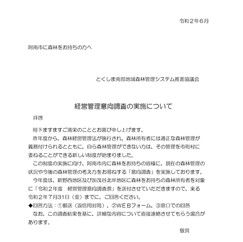 阿南市に山林をお持ちの方へ、意向調査票をお送りさせていただきました。